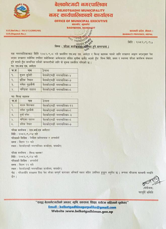 परीक्षा कार्यक्रममा उपस्थित हुने सम्बन्धमा !