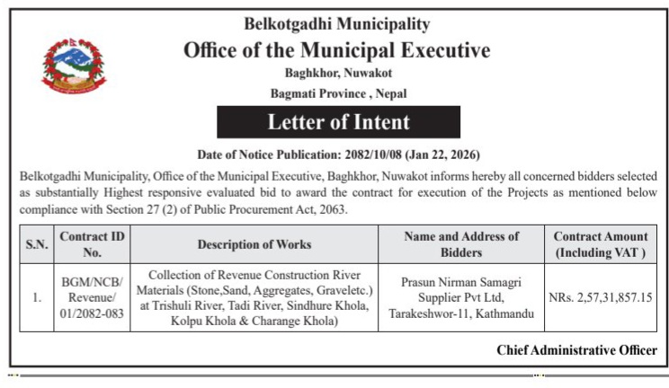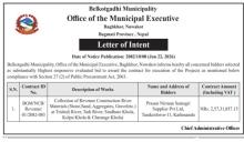 बोलपत्र स्वीकृत गर्ने आशयको सूचना !