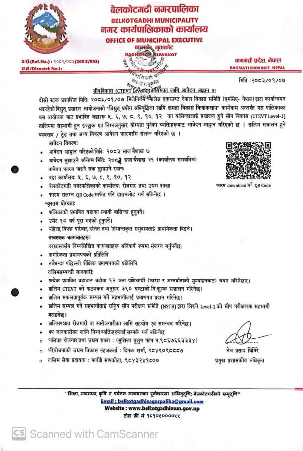 सीप विकास तालिमको लागि आवेदन आव्हान सम्बन्धी सूचना !