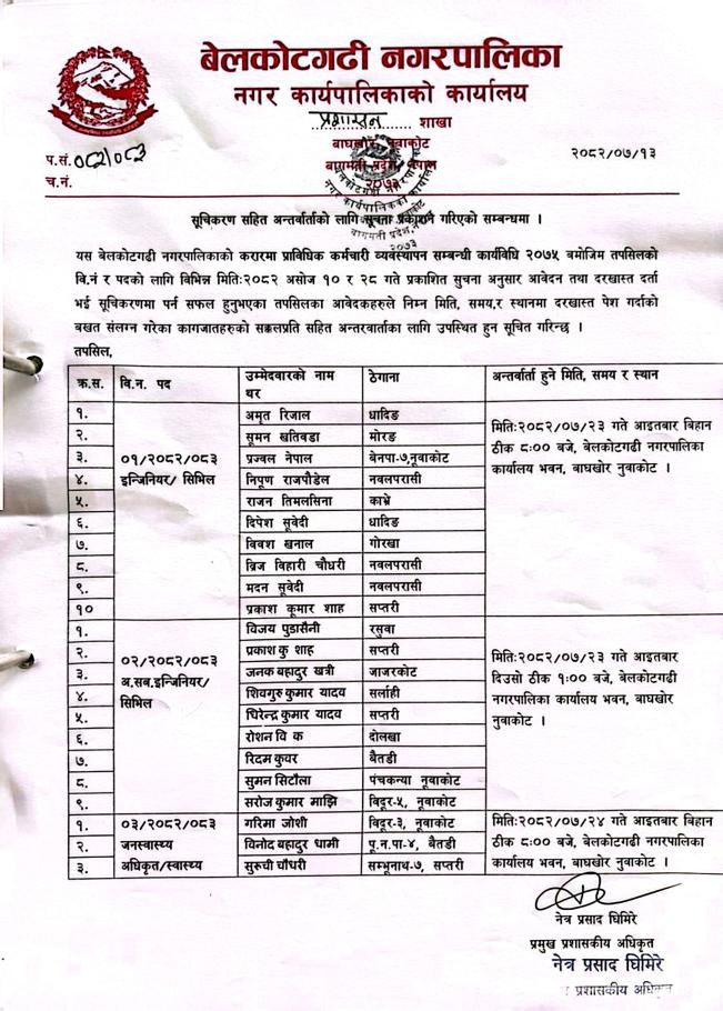 सूचीकरण सहित अम्तर्वार्ताको लागि सूचना प्रकाशन गरिएको सम्बन्धमा !