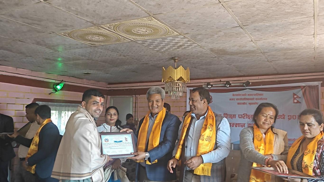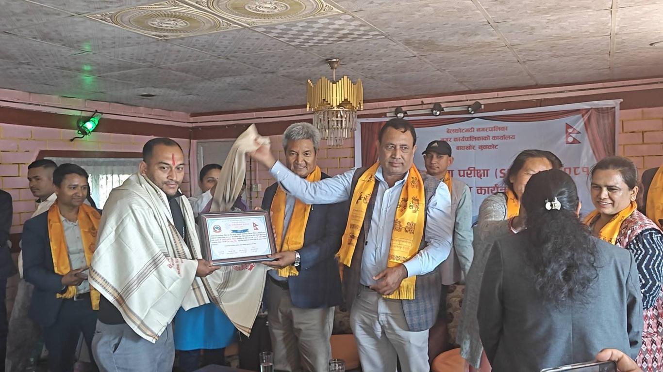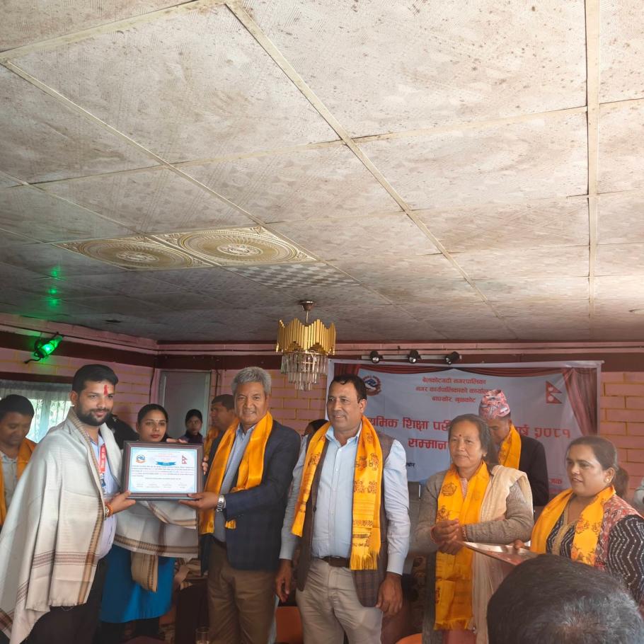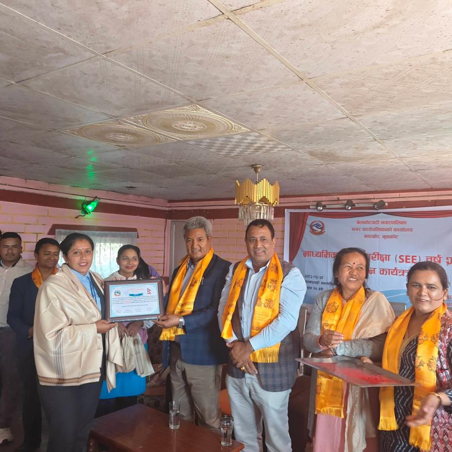 बेलकोटगढी नगरपालिका शिक्षा, युवा तथा खेलकुद शाखाको आयोजनामा माध्यमिक शिक्षा परीक्षा एसइई २०८१ मा उत्कृष्ट नतिजा ल्याउने विद्यार्थी तथा शिक्षकहरूलाई सम्मान गरिएको छ ।