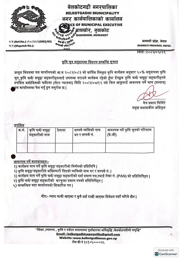 कृषि चुन अनुदानमा वितरण सम्बन्धी सूचना !