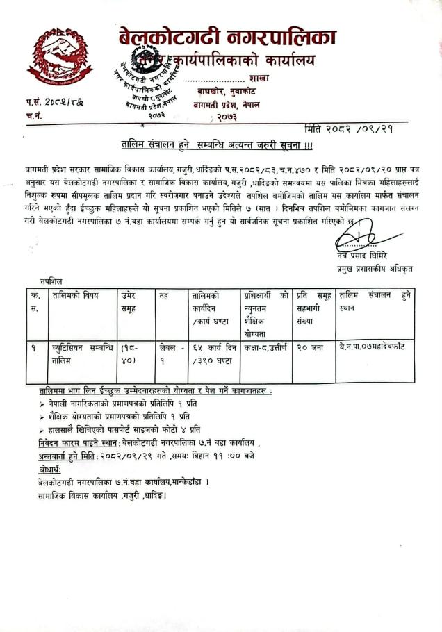 तालिम संचालन हुने सम्बन्धी सूचना !