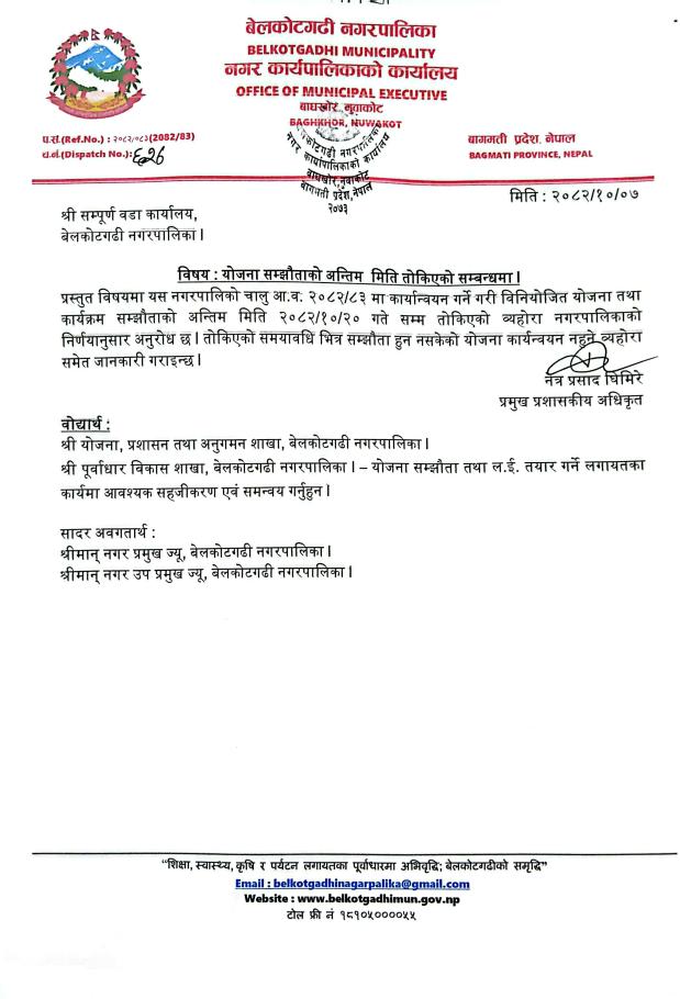 योजना सम्झौताको अन्तिम मिति तोकिएको सम्बन्धमा !