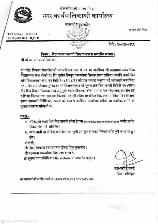 रिक्त पदमा स्थायी शिक्षक सरुवा सम्बन्धी सूचना !