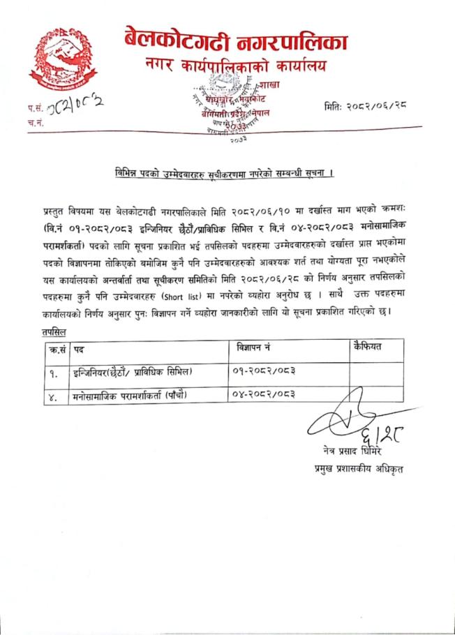 विभिन्न पदको उम्मेदवारहरुको सूचीकरण नगरिएको सम्बन्धमा !