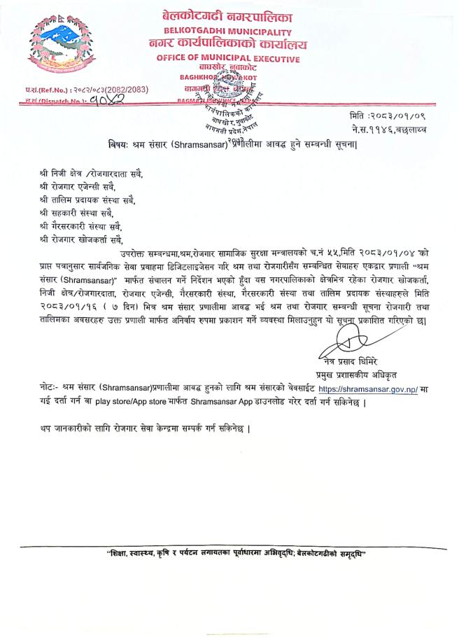 श्रम संसार प्रणालीमा आवद्व हुने सम्बन्धी सूचना !