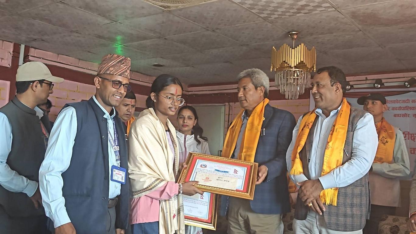 बेलकोटगढी नगरपालिका शिक्षा, युवा तथा खेलकुद शाखाको आयोजनामा माध्यमिक शिक्षा परीक्षा एसइई २०८१ मा उत्कृष्ट नतिजा ल्याउने विद्यार्थी तथा शिक्षकहरूलाई सम्मान गरिएको छ ।